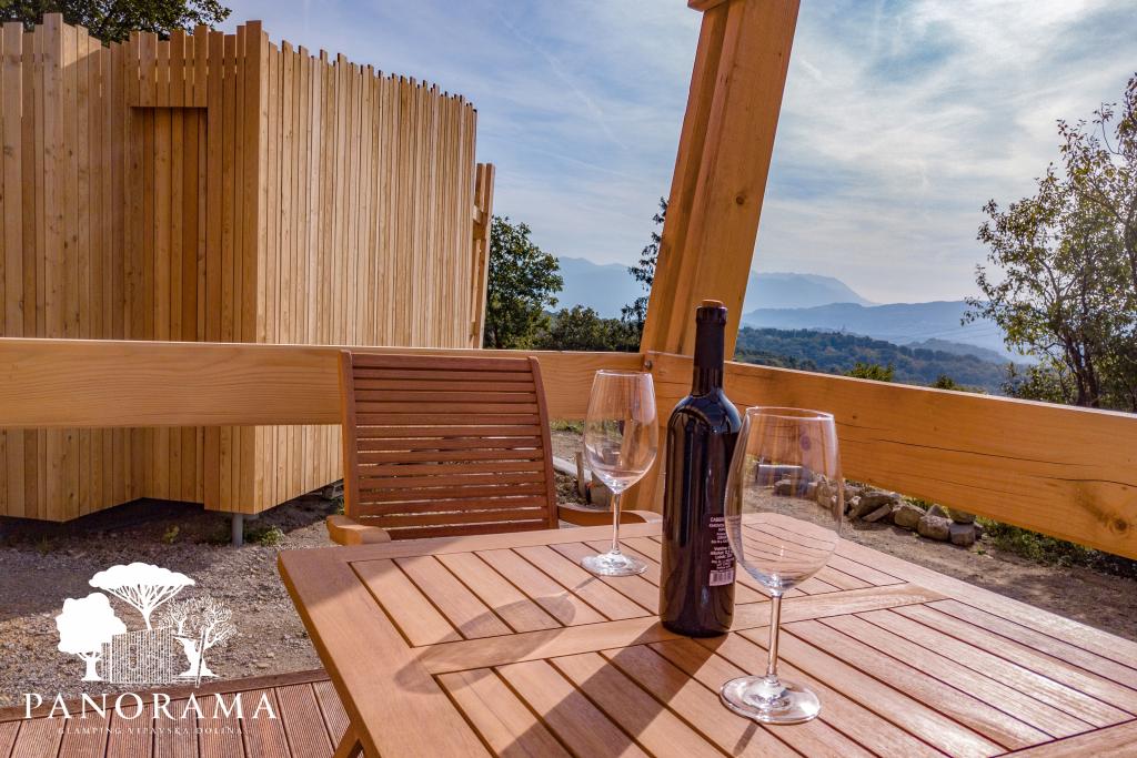 Soba za par ali družino. Poleg zakonske postelje sta dodatni otroški ležišči na pogradu. Enota je sodobno opremljena s kuhinjskim kotičkom, hladilnikom, mikrovalovno pečico in klimatsko napravo. Jedilni del je oblikovan okrog masivne klopi s katere je prelep razgled na Vipavsko dolino. Kopalnica je opremljena s tuš kabino. Enoti pripada velika terasa z mizo in stoli.