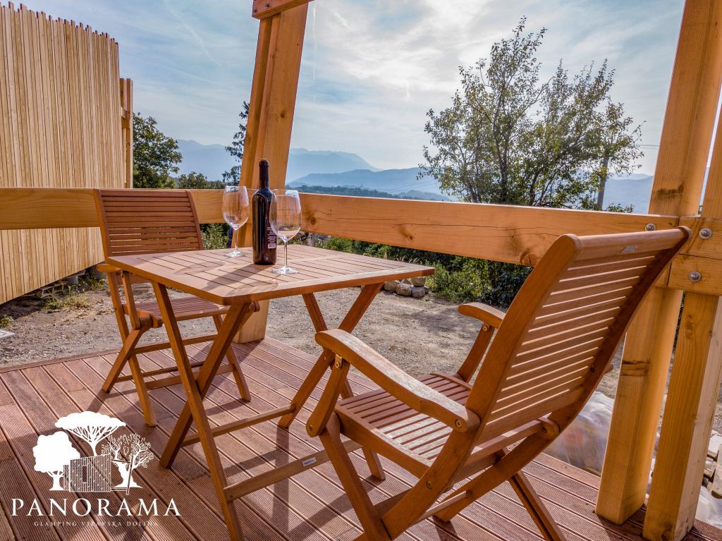 Soba za par ali družino. Poleg zakonske postelje sta dodatni otroški ležišči na pogradu. Enota je sodobno opremljena s kuhinjskim kotičkom, hladilnikom, mikrovalovno pečico in klimatsko napravo. Jedilni del je oblikovan okrog masivne klopi s katere je prelep razgled na Vipavsko dolino. Kopalnica je opremljena s tuš kabino. Enoti pripada velika terasa z mizo in stoli.